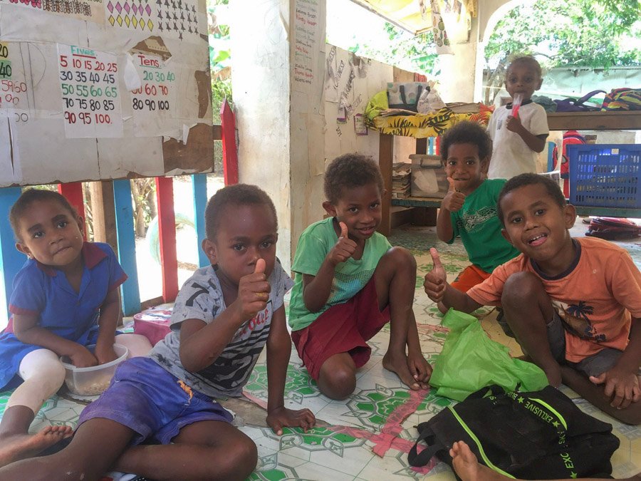 kids in vanuatu sitting on classroom floor