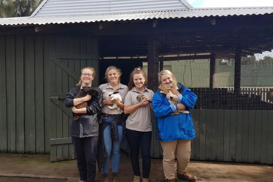 IVI volunteers holding rabbits
